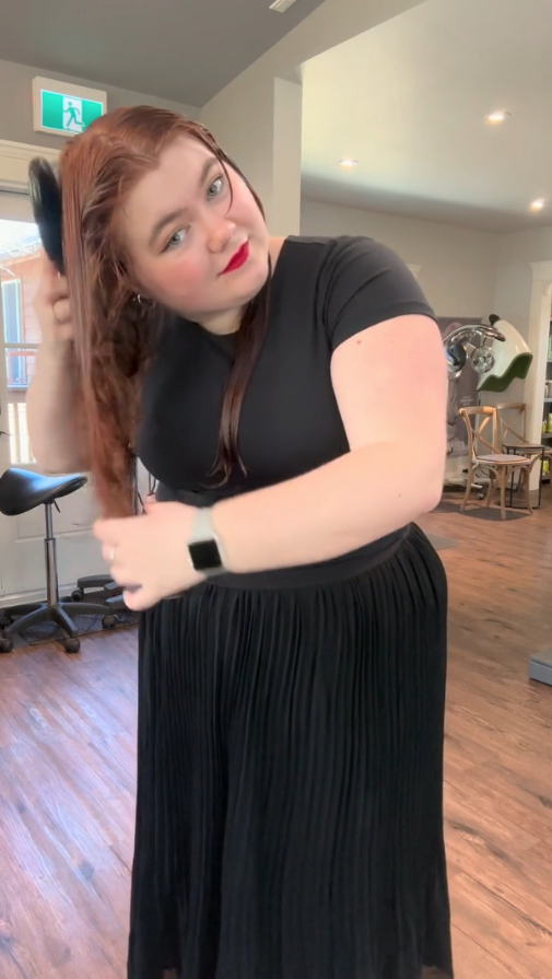 3) Brush hair in sections, shake out curls and scrunch again for more definition/volume