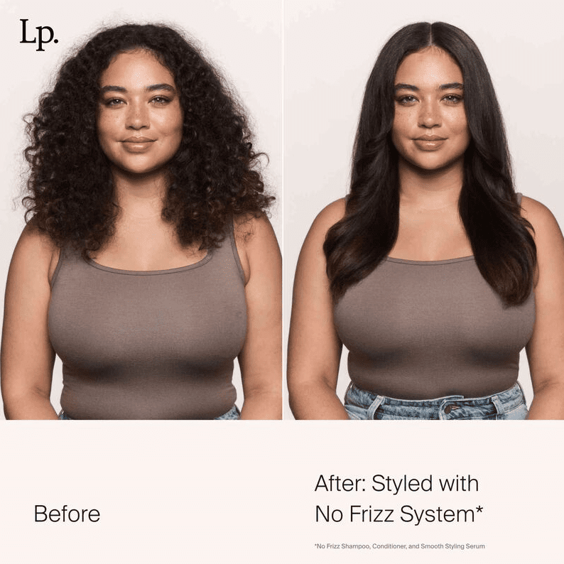 *When using the No Frizz System (No Frizz Shampoo, Conditioner + Styler) vs. untreated.
