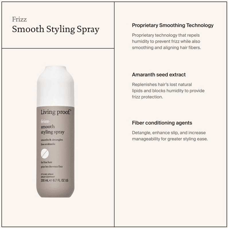 Smooths and detangles. A lightweight, silicone-free anti-frizz spray designed for fine hair that delivers serious smoothness and frizz-fighting powers while detangling and preventing both static and flyaways.