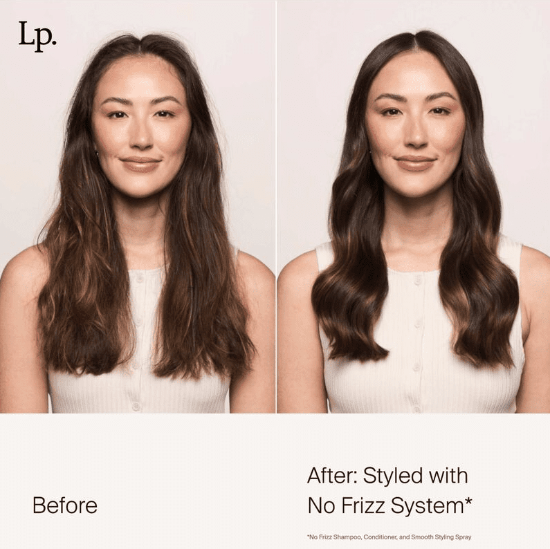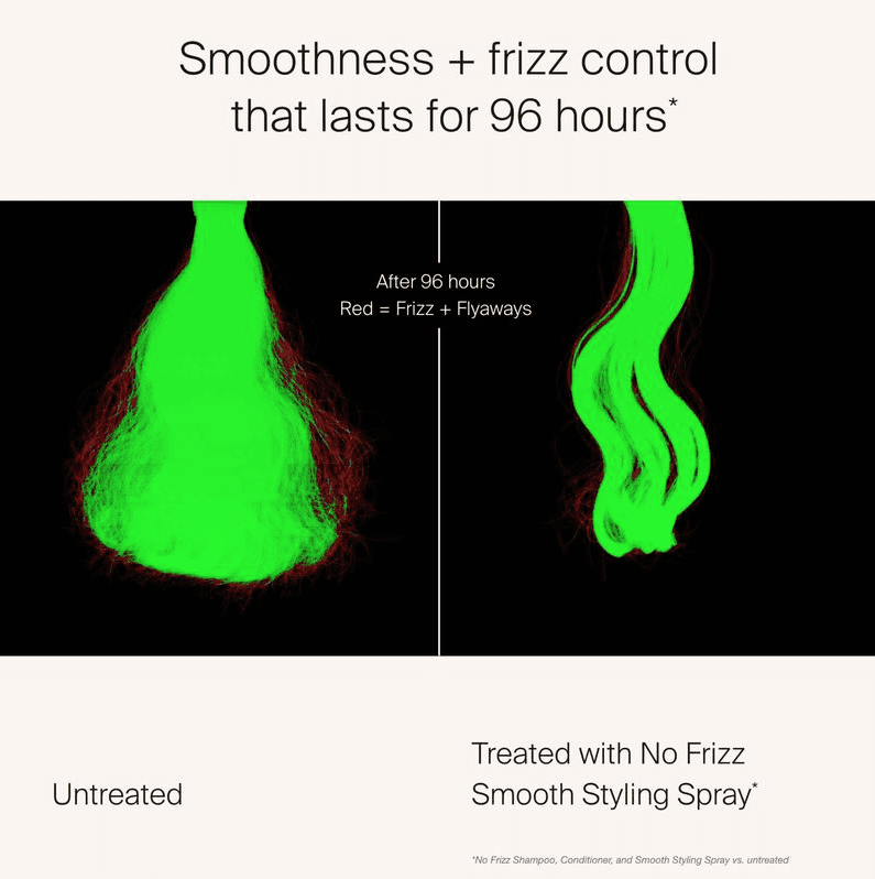 *When using the No Frizz System (No Frizz Shampoo, Conditioner + Styler) vs. untreated.