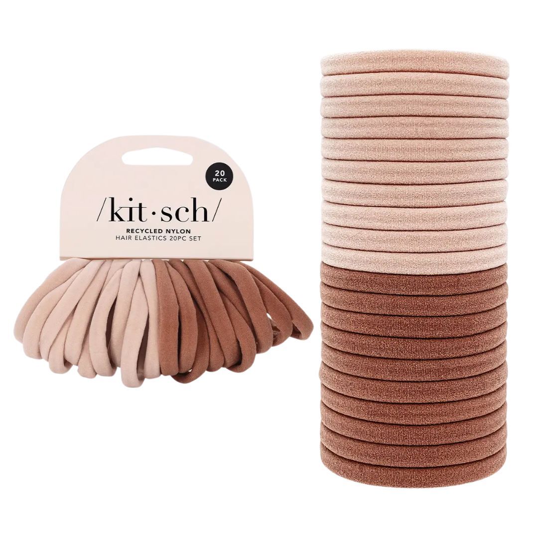 Kitsch Recycled Nylon Elastics are an everyday must-have! Consciously created from recycled materials, these elastics are every ponytail’s perfect hair basic & eco-friendly too! These elastics glide gently through hair for a tight all-day hold while being kind on your hair and the environment.
