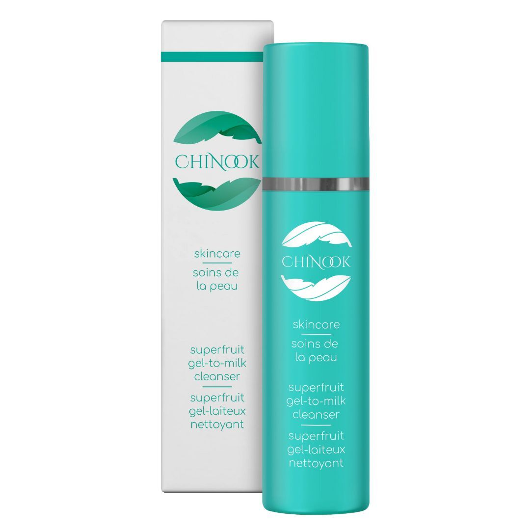 Chinook Superfruit Gel-to-Milk Cleanser is step 1 of 2 in our simple 2-step skincare routine.